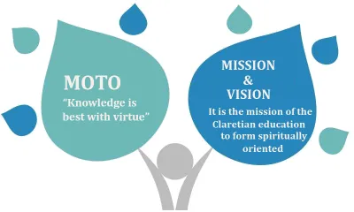 It is the mission of the Claretian education to form spiritually oriented, morally upright, intellectually competent, socially responsible, culturally tolerant citizens through holistic education in a warm, nurturing environment for the creation of a civilization of love.